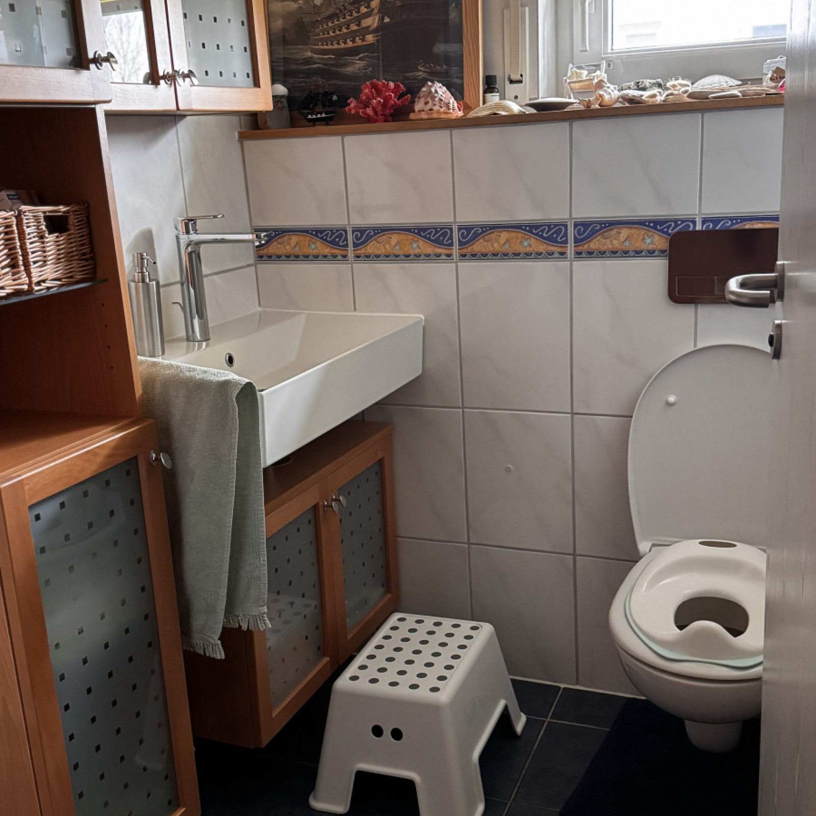die Toilette mit dem Waschtisch